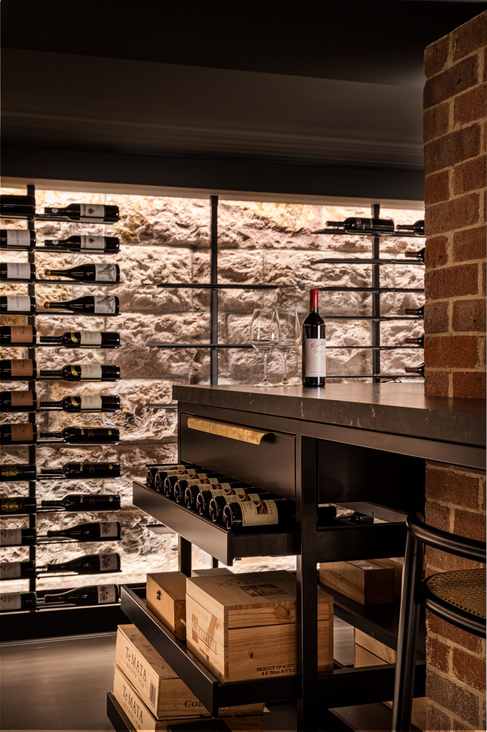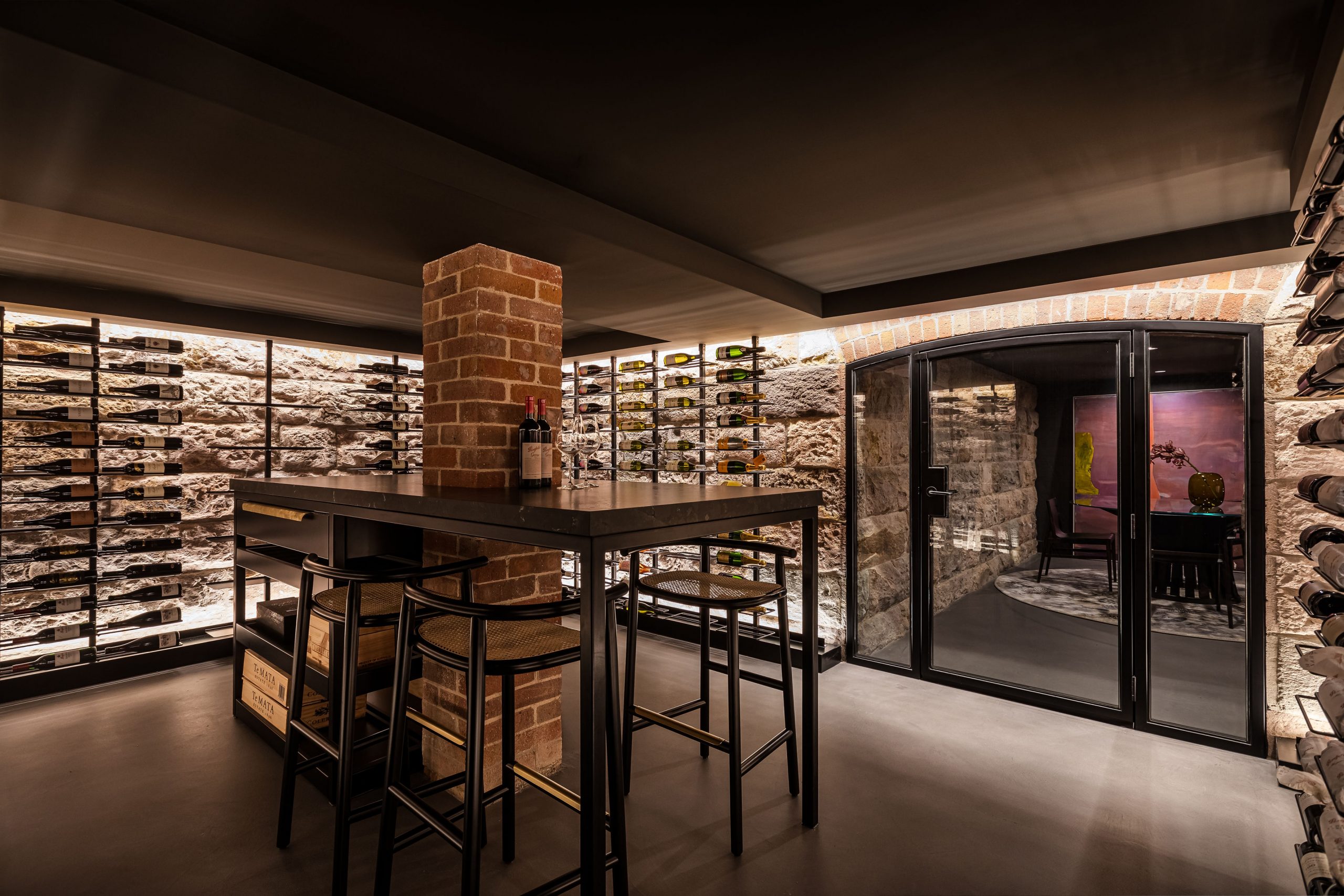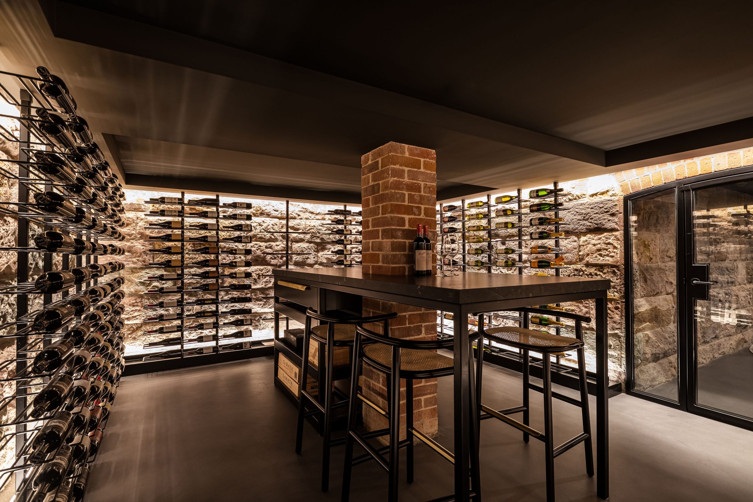Following heritage guidelines and preserving the original sandstone, the team created a haven filled with character, uniqueness and space for a lot of wine!