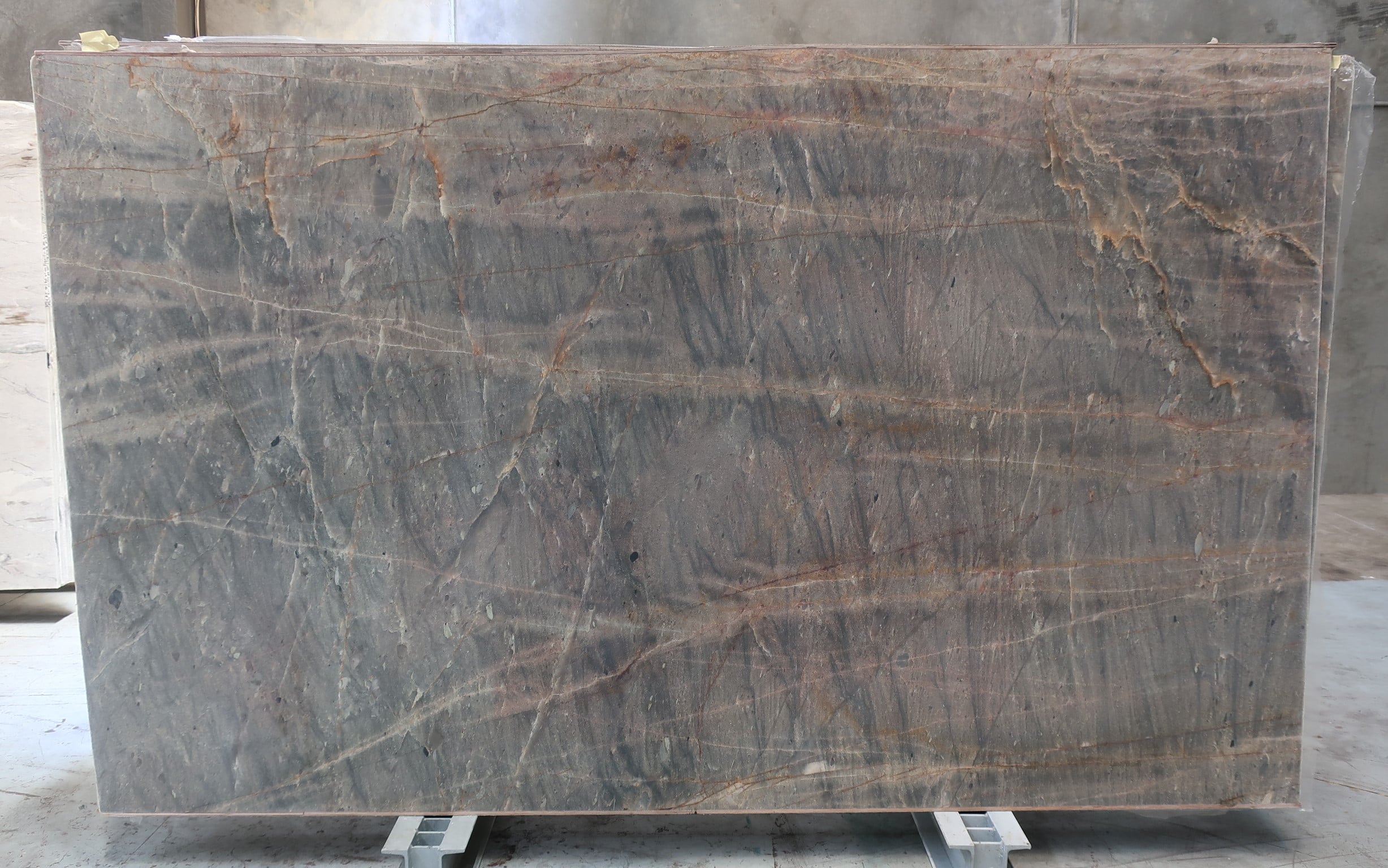 Amazon Fire Quartzite is a unique stone, with juxtaposing movement across its face and strong earthy tones. Shades of rust and charcoal create sharp lines across the face of the stone, in opposition to each other. This lively stone would do well behind a fireplace or as a splashback in your kitchen.
