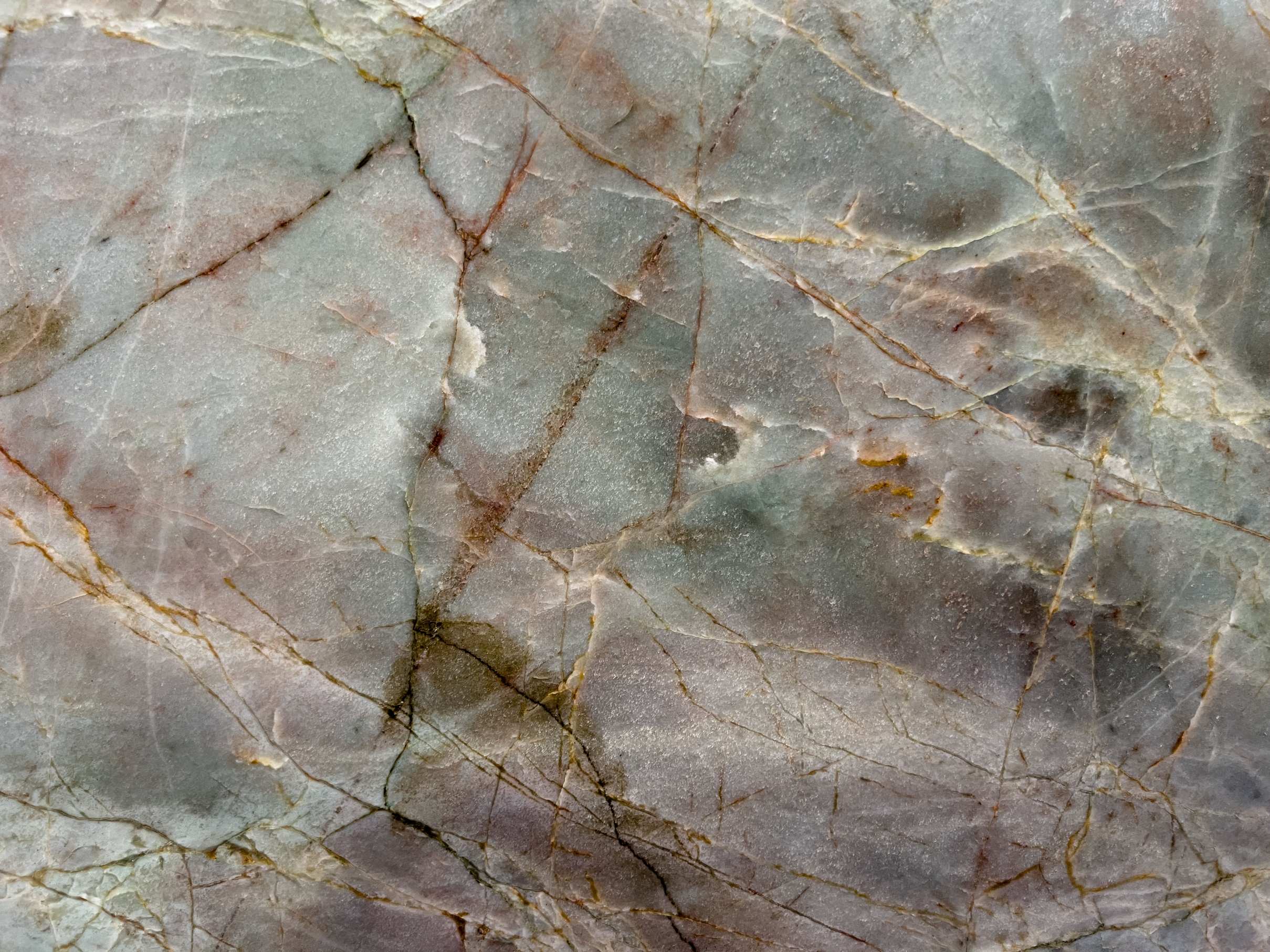 Amazonica Quartzite lives up to its name. Rainforest greens mingle in gradients with deep browns, crisscrossed by light, rusty spiderweb veining. This stone would be a gorgeous addition to a home entryway or upscale lobby and would sing as a backlit feature wall.