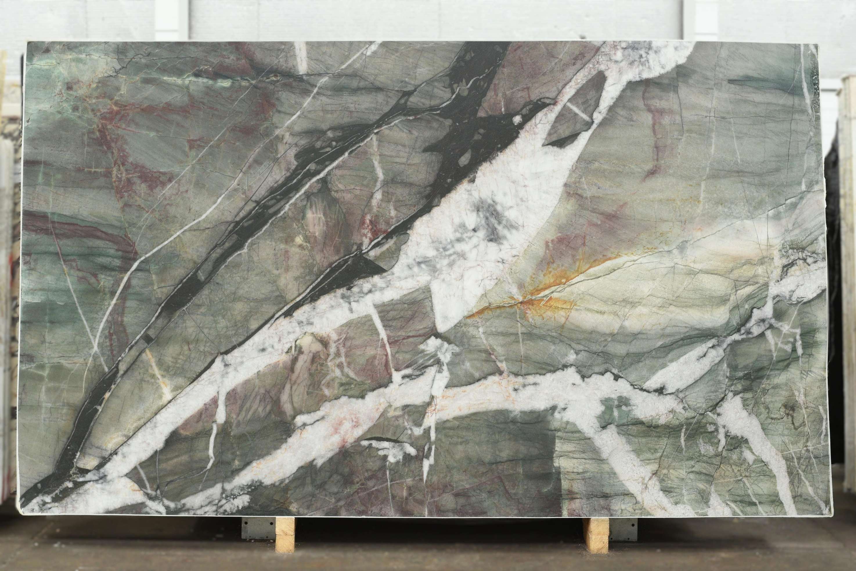 Drawing from nature, Botanic Crystal Quartzite is an inviting choice for contemporary design sensibilities. The visual plane has been stroked with feeling and momentum. Dark olive green and emerald shadows, an ivory dove swooping. The shallow stream ripples. Below, moss and algae, the red and yellow ochre of fallen rocks. The whispering breeze has a strange power over the grounded elements, shifting them along before the strong winds arrive. Botanic Crystal is a visually impactful choice, infusing any space with a sense of cool. Perfect for kitchen island and benchtops, splash backs, feature walls and boutique commercial surfaces.