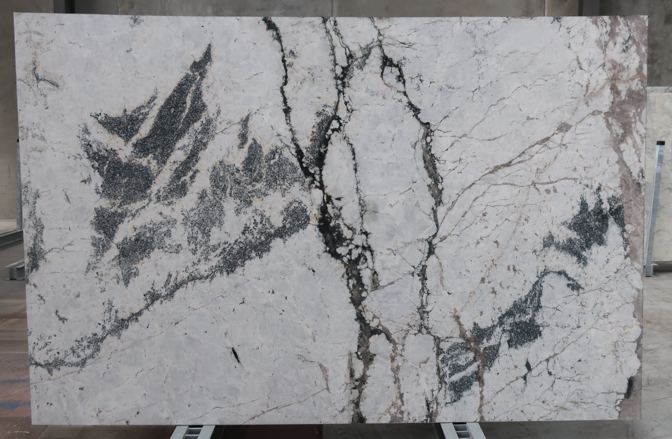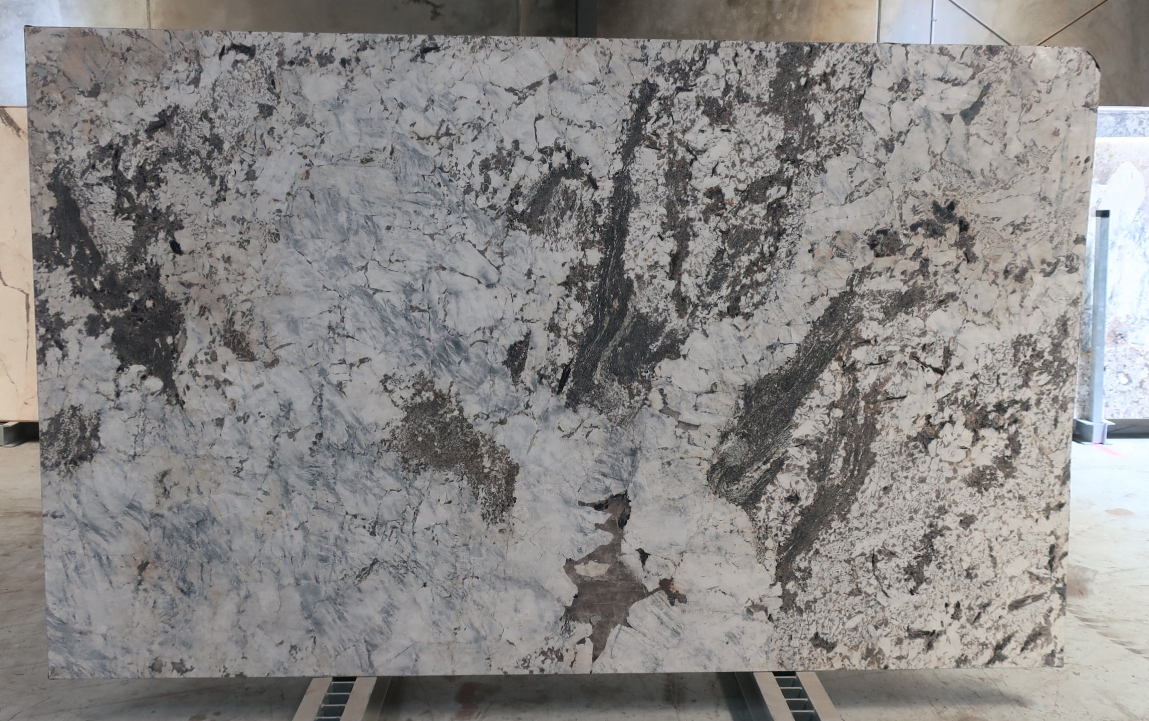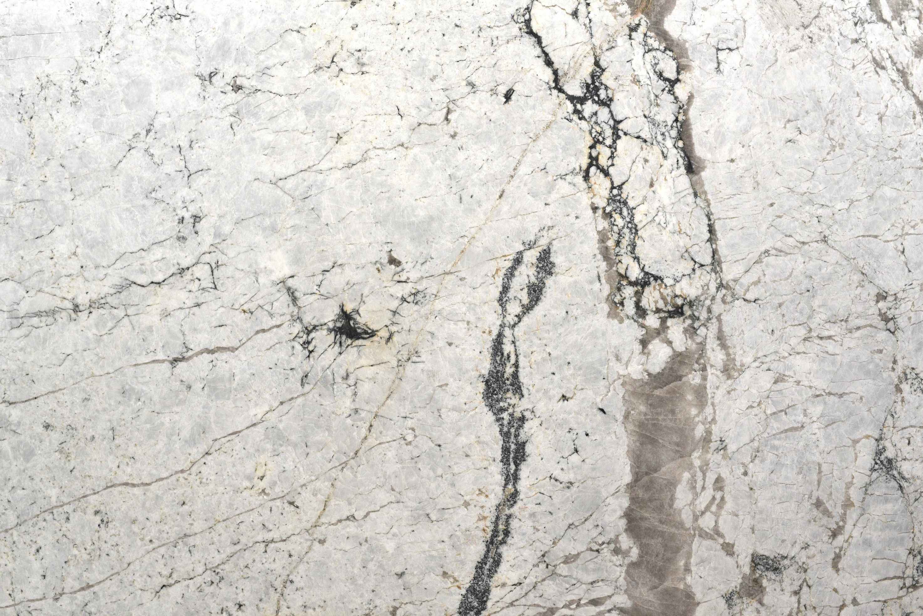 Against a white base, Biano Ignio Granite creates stunning contrast with charcoal inclusions and grey accents. This cut of granite reveals more understated accenting, with the white’s purity and inclusions of blush and grey stone, making the thinner veins of darker stone leap from the face. The finer details of this slab would work well in an entryway or as a centrepiece kitchen island.