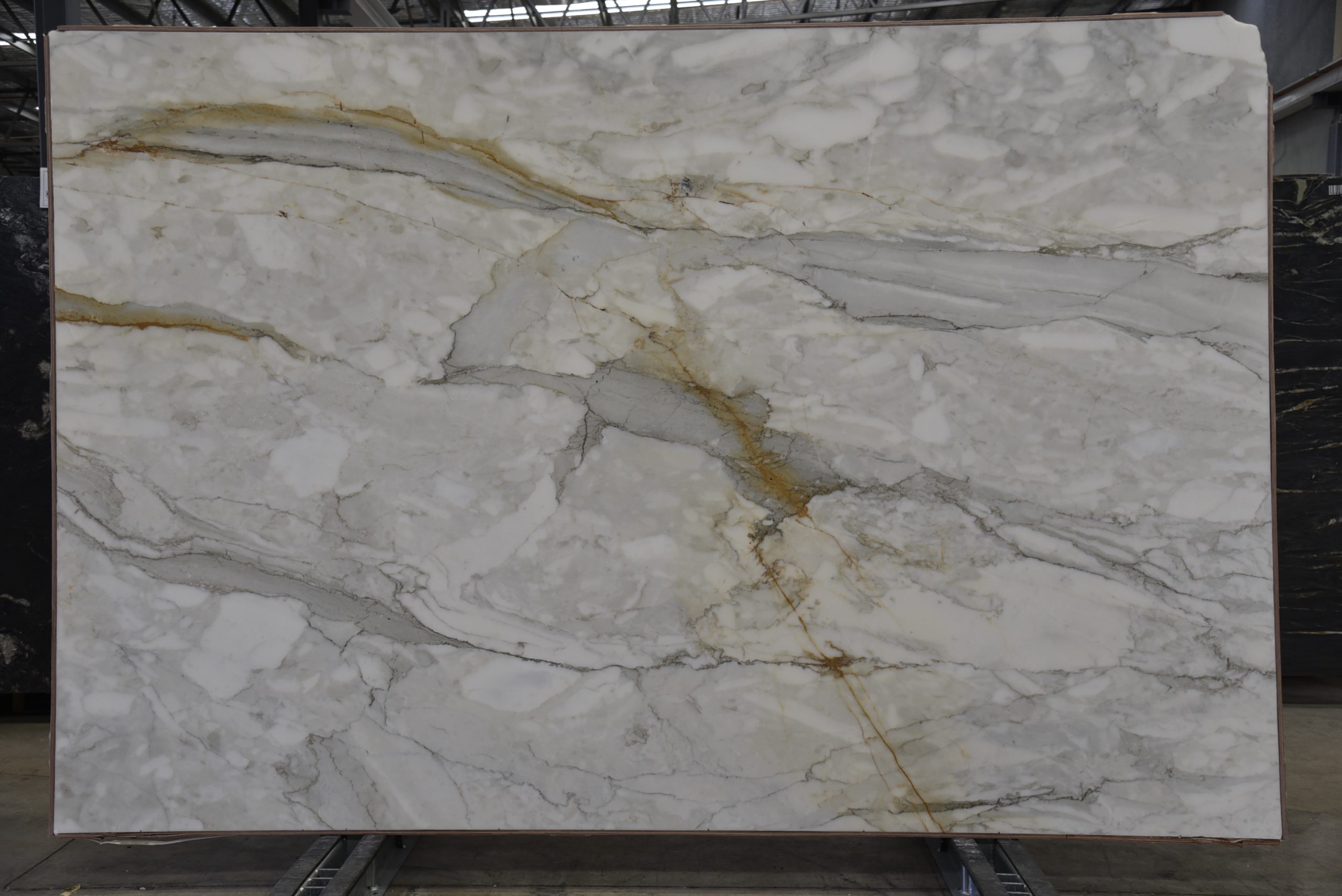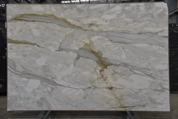 Calacatta Borghini Marble is an opulent, watercolour masterpiece. Featuring painterly swathes of gold and grey intercut with striking, rusty veins, this stone evokes an abstract coastline or undulating dunes. Use this Marble as a feature wall, bathroom vanity, or kitchen splashback.