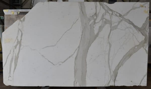 These Calacatta Oro Marble slabs come in a simple honed finish as they do not need any help in portraying their purely artistic and grand statement. With a thickness of 20 mm, these slabs will be ideal for your kitchen benchtop or feature wall. The slab presents a beautifully complex array of light and dark grey veins across a pure white canvas. Marble comes in many different colour variations and usually displays a prominent veining pattern with luxurious swirls and patches of contrasting colour that makes marble so opulent and sophisticated. View our full Marble range in our Sydney, Brisbane or Melbourne showroom.