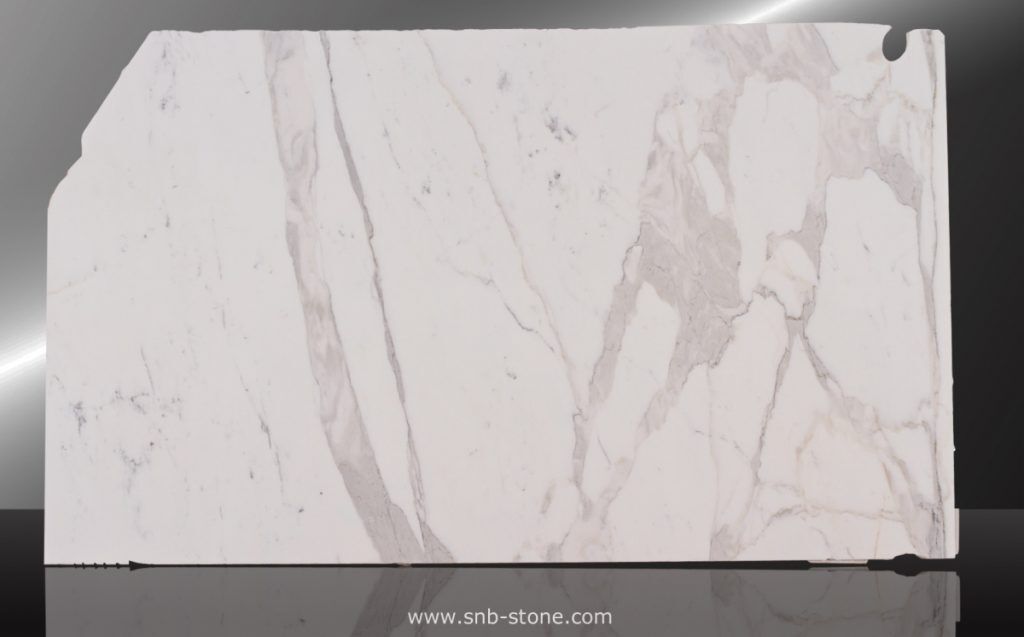These Calacatta Oro Marble slabs come in a sophisticated polished finish, helping to portray their purely artistic and grand statement. With a thickness of 20 mm, these slabs will be ideal for your kitchen benchtop or feature wall. The slab presents a beautifully complex array of light and dark grey veins across a pure white canvas. Marble comes in many different colour variations and usually displays a prominent veining pattern with luxurious swirls and patches of contrasting colour that makes marble so opulent and sophisticated. View our full Marble range in our Sydney, Brisbane or Melbourne showroom.