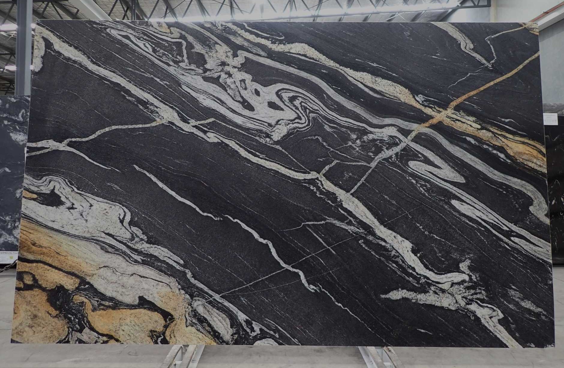 Copacabana Granite is a stunning high contrast slab, its deep charcoal face is swirled and sliced with veins of gold, rust, and grey. Texturing within these veins is reminiscent of the eponymous Brazilian beach, giving even more intrigue to this luscious stone. This eye catching and luxurious visage is fit for a feature wall, splash back or statement bench top.