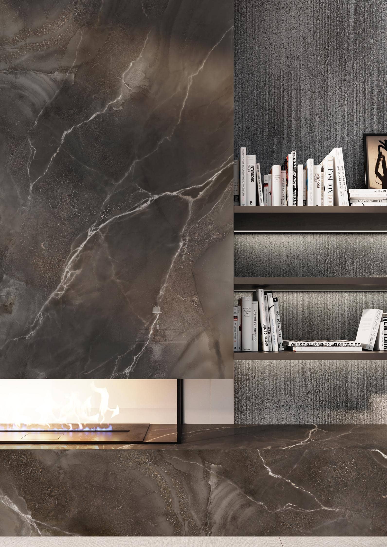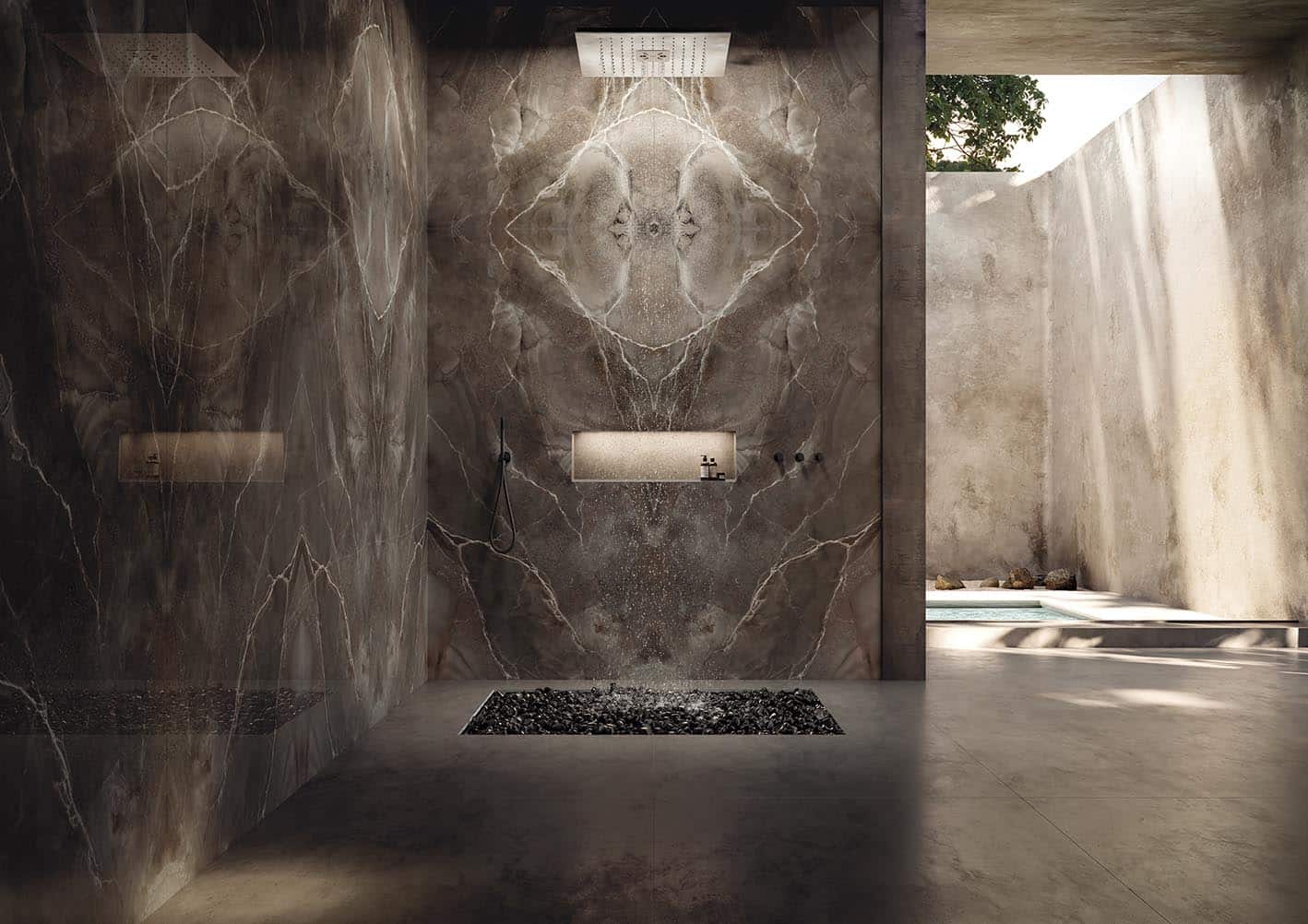 For drama and depth, look no further than Infinity Andromeda Porcelain. This deep charcoal stone features marble veining and speckles of contrasting white, echoing through transparent layers. The Patinata finish on this material’s surface adds an enticing tactile dimension, as well as a wavy visual effect. The intensity of this porcelain brings a refined touch to your custom designs, whether that be as wall cladding, benchtops or a bespoke furniture piece.