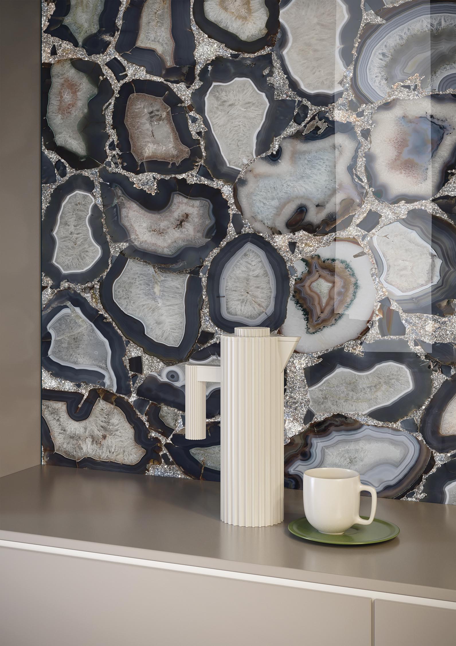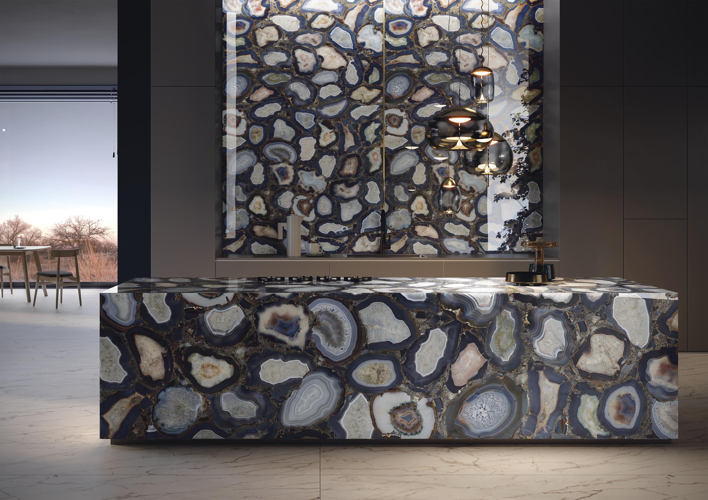 Add an element of the impossible to your space with Infinity Cammeo, a porcelain featuring the beauty of rare geodes. In shades of blue, turquoise and rust, this stunning colour palette is made even more bold with the use of Glam tech that creates visual depth with shimmering particles. The surreal nature of the quartz pattern alongside the magic of refracted light would see this porcelain become the main event within your design project.