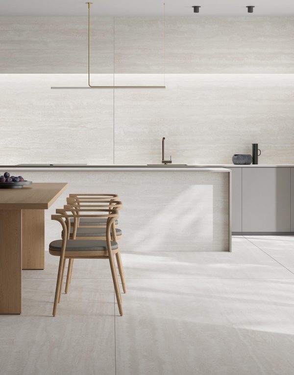 In shades of cream and white, Infinity Travertino Bianco brings a subtlety to the classic pattern of this banded stone. Layers across the face of the slab meld together, building quiet intrigue as colours evolve. Create openness in living spaces, with this adaptable porcelain as a perfect benchtop, splashback or as wall cladding.