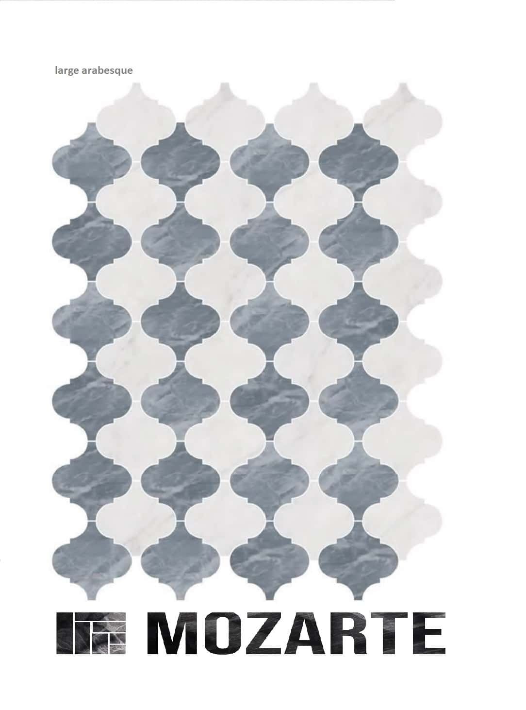 Large Arabesque Marble Mozarte showcases an antique look with grey and white pieces. Ideal applications are in the kitchen or laundry as a slashback. Mozarte Natural Stone Mosaics are cut by Water Jet to ensure a beautiful and consistent look. Contact our offices for more information on sheet size and thickness. View our full Mosaic range in our Sydney, Brisbane or Melbourne showroom. INDENT ORDER BASIS ONLY