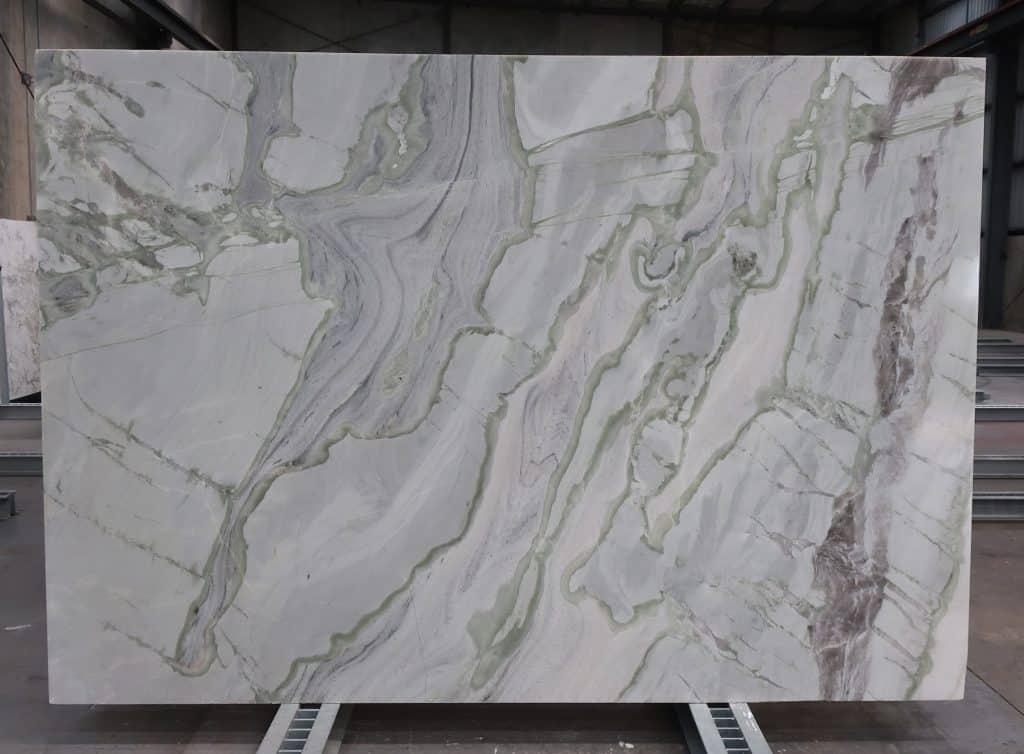 Oyster White Marble is a gorgeous cut of stone that reveals the time taken for nature to create such a marvel. Like the layers of hard transparent reflect in an oyster, this marble has been cut perfectly to showcase it’s layers of growth through time. It’s cool greys lean green, and would give a calming energy to any bathroom or kitchen.