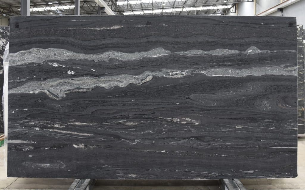 Platinum Black Quartzite is a cut of stone rich with detail and unique accents. Leaning more green in its dark tones, this slab is full of veins that flow and eddie like currents in a stream in shades of charcoal, cream and deep green. This soft pattern would make for an inspired addition to your entryway or kitchen design.