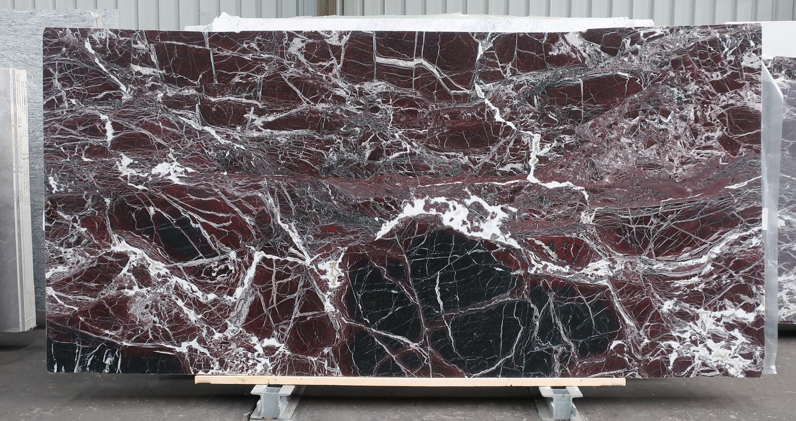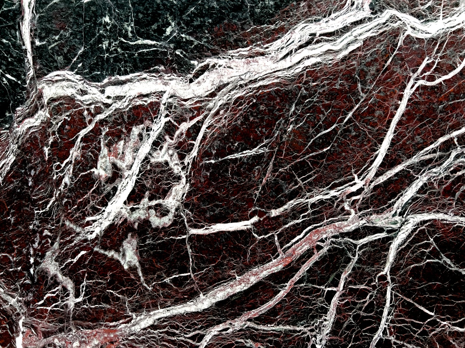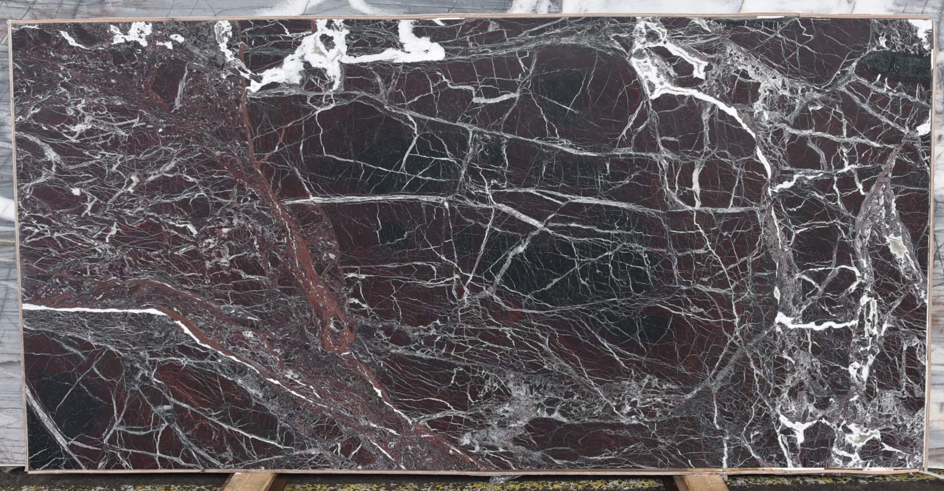 Rosso Levanto Marble is a sumptuous, stately stone. Blood red and black mingle on its surface, while a shock of white, webbed veining elevates its dark and moody energy into something opulent and refined. An entryway feature wall, kitchen island, or splashback are excellent ways to show off this eye-catching material.
