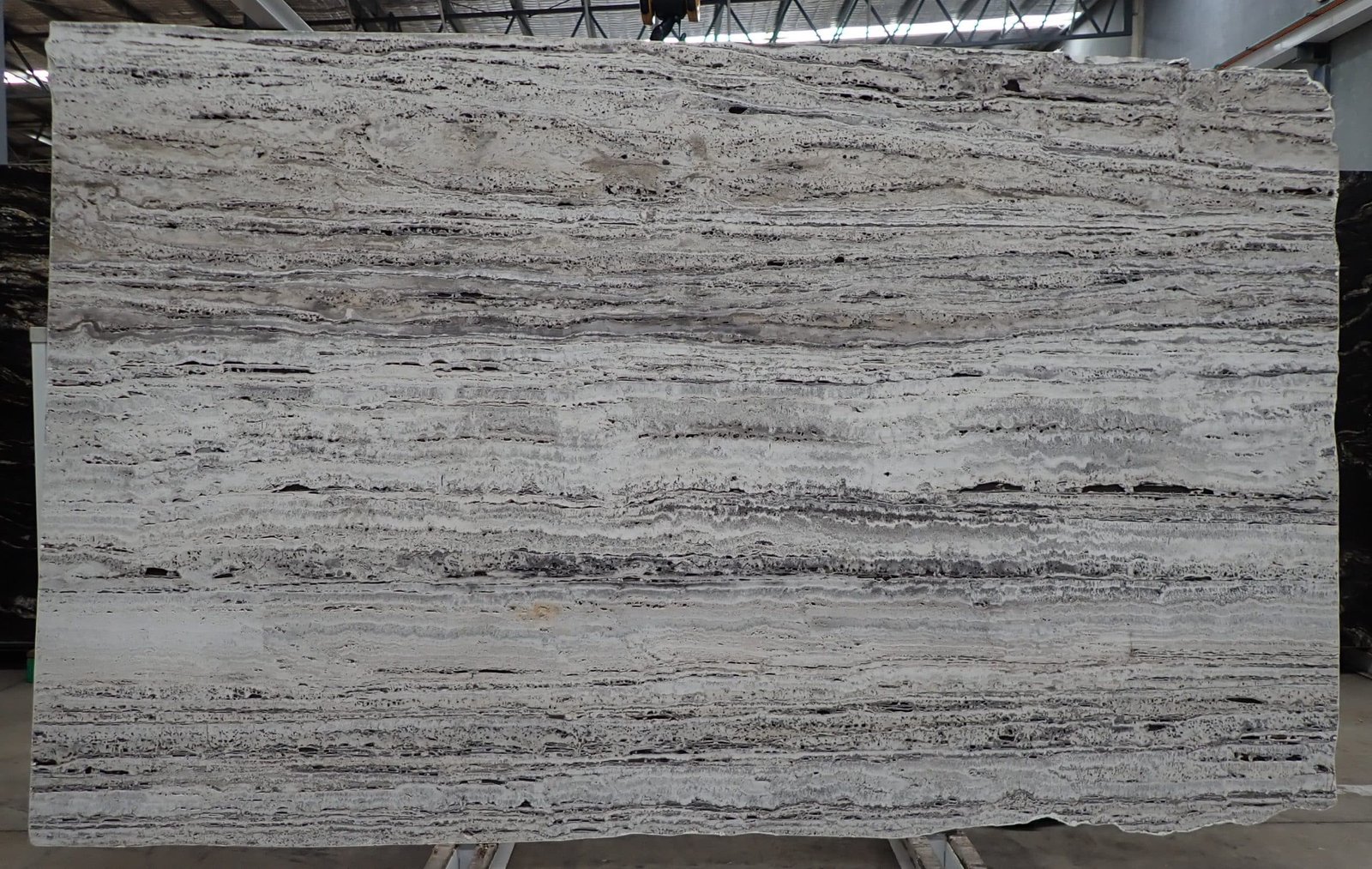 Intense and raw, our Silver Travertine is full of cool tones and high contrast. Deep layers of charcoal slice through the striations of chocolate, white and grey stone, making for a steady presence on your kitchen bench top or bathroom wall. This Travertine stone is available filled and unfilled so its intensity can be lent to your outdoor vision as well as indoors.
