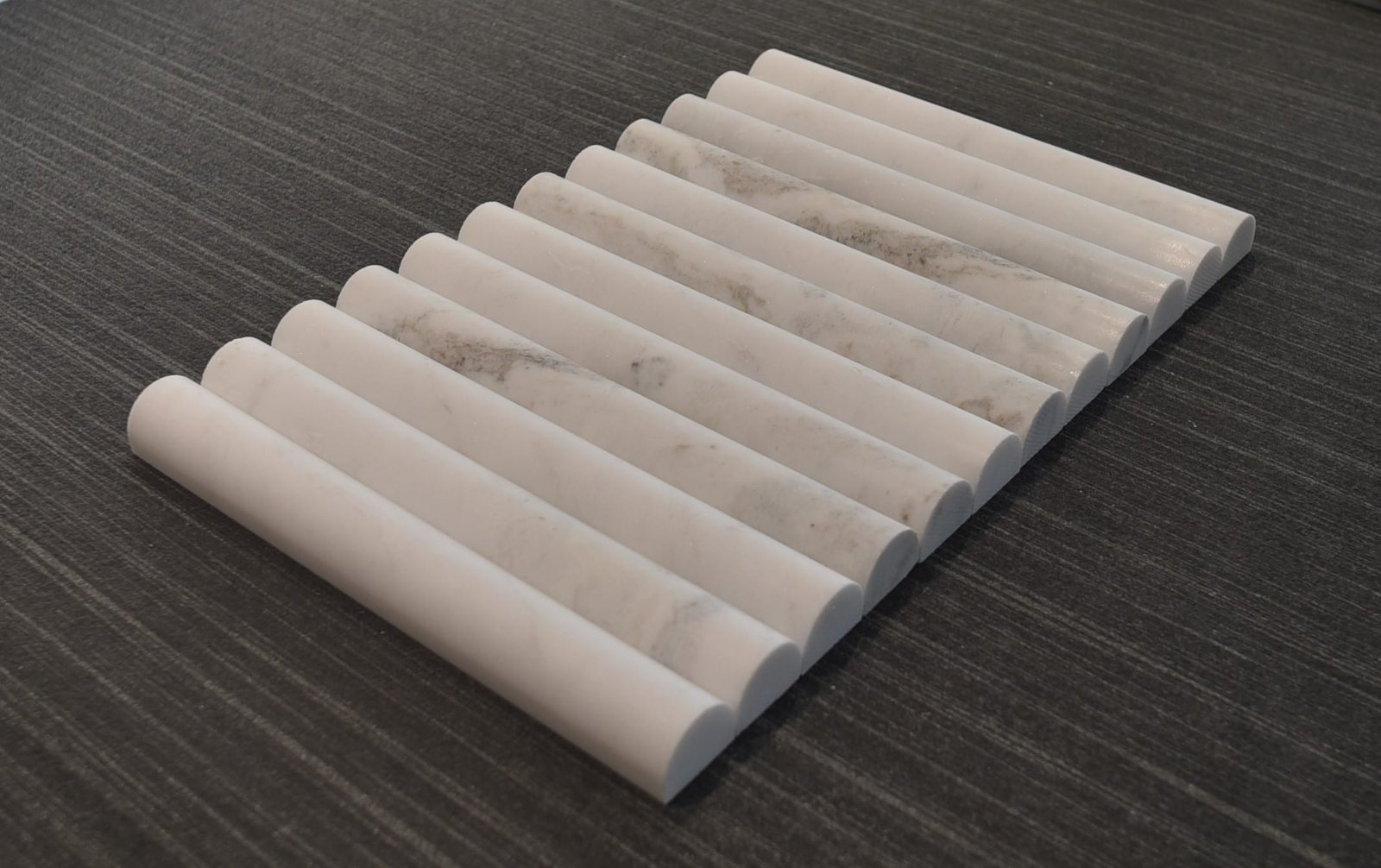 Valentina Marble, the Madonna of our range, shows an elegant and pure white surface, with minimal blemishes and veining. This material is speckled with crystalline mineral deposits, bringing in a beautiful sparkling element. These honed flutes add a sense of luxury and extravagance to any project. Marble comes in many different colour variations. Often described as opulent and sophisticated, marble usually displays prominent veining patterns with luxurious swirls and movement of contrasting colour. View our full Marble range in our Sydney, Brisbane or Melbourne showroom. INDENT ORDER BASIS ONLY 900x40x30mm 305x40x30mm
